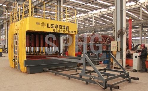 漲形機是水泊焊割(SPHG)在積累了多年的焊接工藝和設備調試技術并吸收國外先進技術的基礎上自行開發、研制的一款封頭漲形專用設備。它是利用我們常見和常用的液壓系統制動液壓缸,利用模具把工件壓緊,通過高壓水機往模具里注水來完成漲形的。