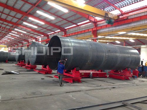 自調式異形筒體滾輪架是一種適用于焊接管道、容器、油罐等圓筒形 矩形工件的專用焊接輔助機械,廣泛應用在制管業、壓力容器制造業、金屬結構焊接加工業、重型機械制造業等的現代加工行業中。我公司滾輪架的滾輪旋轉采用交流電機驅動、變頻調速,具有調速范圍寬,轉動平穩性好,低速特性硬等特點。與操作機、焊接變位機、埋弧焊機等設備配合使用,可對工件進行環縫焊接及縱縫焊接,可提高焊接生產速度并使焊接質量保持穩定,顯著減少了焊接輔助時間、降低了工人的勞動強度、改善工作環境、提高生產率。